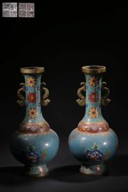 清 “乾隆年制”款景泰蓝缠枝花纹双兽耳瓶一对