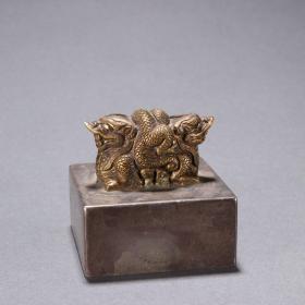 旧藏 纯银鎏金双兽钮印章