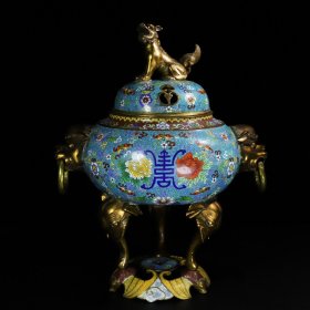 旧藏铜胎掐丝珐琅双兽头吊环寿字熏香炉长46厘米宽32厘米高56厘米重15100克