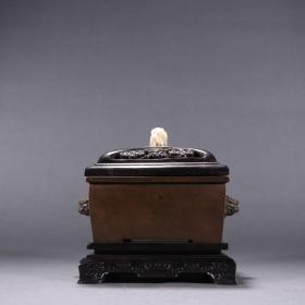 旧藏 和田玉 双兽耳炉