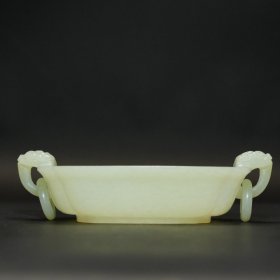 清 和田玉双兽耳吊环水洗雕件 尺寸:长11.4cm,宽7.9cm,高2.4cm,重量126克