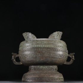 【回流,精铜铸造双兽耳香炉】