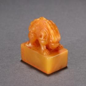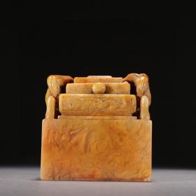 旧藏 田黄石双兽钮印章。规格:高4㎝宽3.5㎝厚2.2㎝重52g