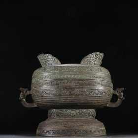 战国 铜造双兽耳簋