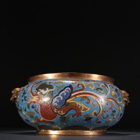 景泰年制 铜鎏金掐丝珐琅双兽耳香炉