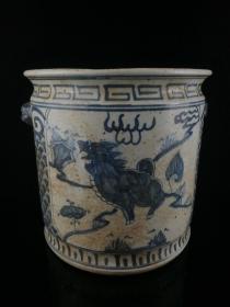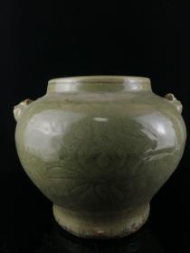 122_青瓷龙泉窑瓷器双兽耳缸 【门海】梅子青釉 釉汁肥润 双兽耳 器形规整 胎质细腻 温润如玉 高度239mm 直径248mm 重量3820g 七斤六两 完好