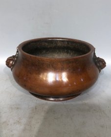紫铜高浮雕双兽耳香炉香炉长18.5厘米高8厘米重2026克