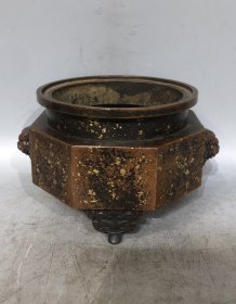 紫铜洒金双兽耳香炉香炉长22厘米高13厘米重3585克