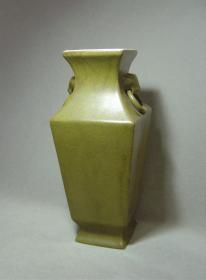 清末民国茶叶末双兽耳瓶。