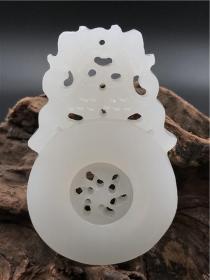 一口价阿富汗玉白玉同心转动双兽挂件古董民国老物件吊坠配饰买家自鉴特价