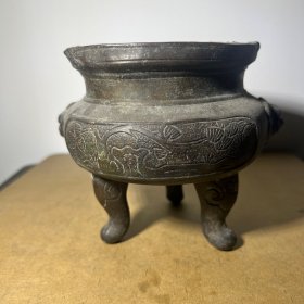 TQ13 清末民初三足鼎炉 少见双兽首像象足