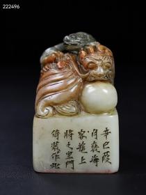 旧藏珍品原石纯手工雕刻寿山石印章。《双兽呈祥》