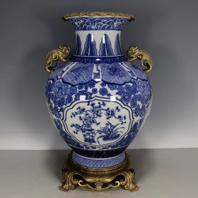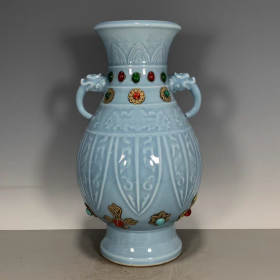 清回流瓷蓝釉宝石双兽头赏瓶