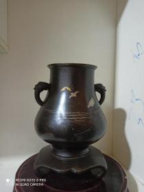 清代 错金银双兽耳铜香炉