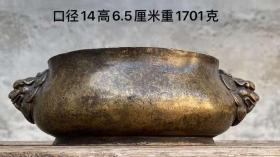 双兽耳宣德炉 一体铸造,炉身大气周正,包浆浓厚,实拍如图!