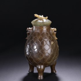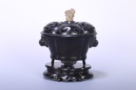 法华彩浮雕酱油双色浮雕扶手双兽熏香炉