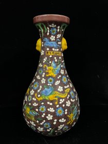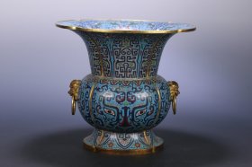 清 乾隆 景泰蓝饕餮纹双兽耳花觚、