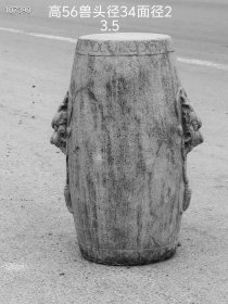 251_乡下收来清代双兽头青石秀鼓敦,包浆磨损自然,尺寸如图!