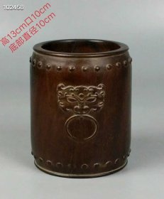 109_清代老红酸枝笔筒 双兽纹鼓造型 品相完整 包浆厚重 保老保真