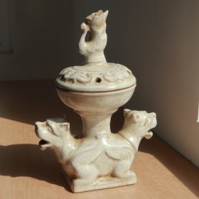 民国或解放后 仿宋代官窑瓷器 双兽薰炉 年份不是很老