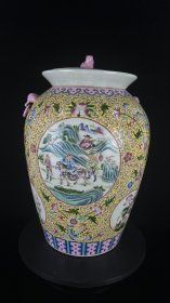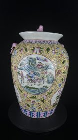 珐琅彩福禄寿缠枝莲纹饰双兽头盖罐,可配对,高47cm,肚径30cm