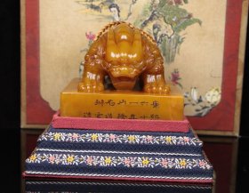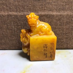 臻品旧藏精品收藏寿山石满黄黄金黄冰底果冻料双兽印章摆件P64 尺寸:98mm98mm77mm 重量:976克 旧藏精品寿山石。取料上乘,颜色漂亮,包浆醇厚,老味十足。线条流畅,工艺精湛,质地细腻油润,收藏佳品!实物更漂亮!