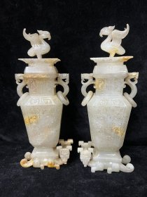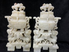 和田玉双兽顶瓶一对高30/16/7.3重65580