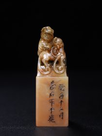 隺田款 田黄石双兽戏珠印章