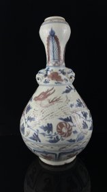 乡下收的明代青花龙凤呈祥纹饰双兽头蒜头瓶, 高36㎝,肚径19㎝