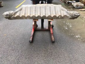 明代,双兽头青石石岩顶,满雕工,包老,独立件,尺寸长170厘米,宽75厘米,厚22厘米