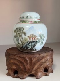 八十年代瓷罐景德镇手绘山水亭台出口创汇怀旧民俗古玩老物件收藏,品相如图所示,各部位有详细图片,均为实物拍摄,是非常不错的怀旧民俗古玩老物件收藏促销摆件!出临近周边,喜欢的朋友来!