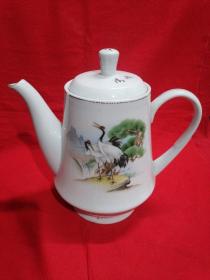 七八十年代景德镇老茶壶 《松鹤延年.一片冰心在玉壶》陶瓷电茶壶 辛西年1981年。高20厘米X底腹宽14厘米 (壶盖有一微小冲线,但声音仍坚实清扬) 实物如图