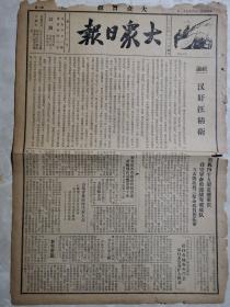 残报 民国28年5月7日大众日报1--4版 汉奸汪精卫 敌机45架进袭重庆我空军奋勇迎战突破敌队 做资料可以收藏慎重 中缝断裂成两部分如图 损伤如图