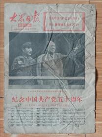 下乡收到少见难得1971年7学1日(大众日报)纪念中国共产党五十周年专刊,毛主席和他的亲密战友林彪在一起大幅图片,包老保真,品相如图,收藏展览佳品!