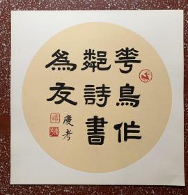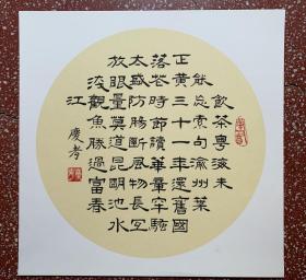 名家隶书精品斗方:浑厚古朴、端庄典雅、精彩联语【暮鼓晨钟惊醒世间名利客、经声佛号唤回苦海梦迷人】全新仿古软卡 38*38(厘米) 不用装裱、可以直接上架