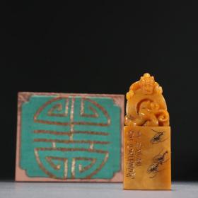 白石款 田黄石螭龙钮印章