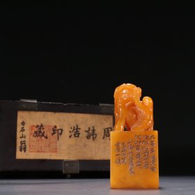 白石款 田黄石瑞兽钮印章。3