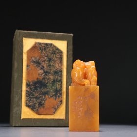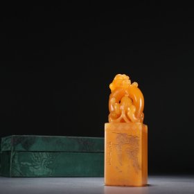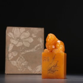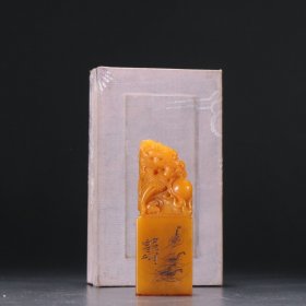 白石款 田黄石螭龙钮印章。