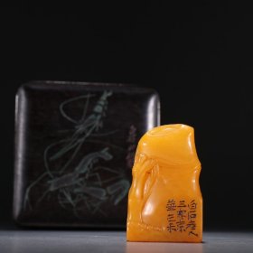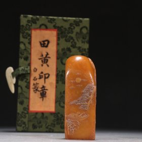 白石篆 田黄石雕山水人物印章 规格:高8.6cm宽3.1cm重200g
