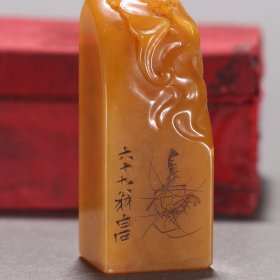 白石篆 田黄石雕“虾纹”印章 规格:高5.8cm宽4cm重134.9g