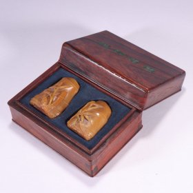 白石款 田黄石竹节印章一对 规格:高5.2cm宽4cm总重90g