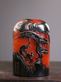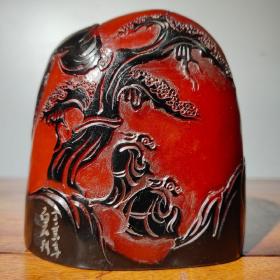 珍藏老料乌鸦皮红田黄薄意【松下论道】印章摆件 红田黄石透(硬)料纯手工雕刻印章书房老闲章摆件 丁亥年•白石 刊 净高10.5厘米长9.5厘米宽4.6厘米重840克
