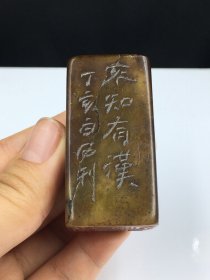 臻品旧藏精品篆刻闲章印章C2 尺寸:57mm30mm30mm 重量:128克 旧藏精品寿山石。白石款。取料上乘,颜色漂亮,包浆醇厚,老味十足。线条流畅,工艺精湛,质地细腻油润,收藏佳品!实物更漂亮!