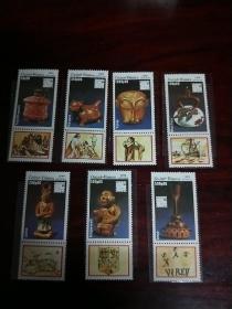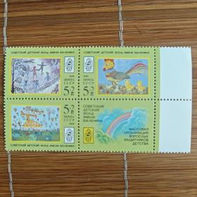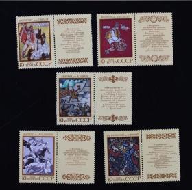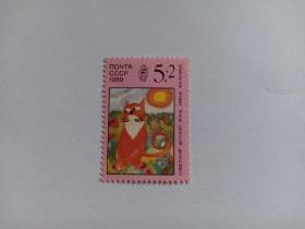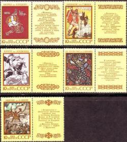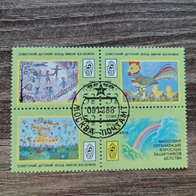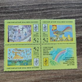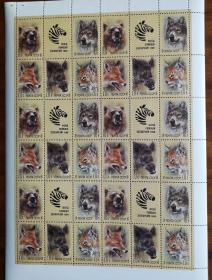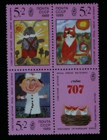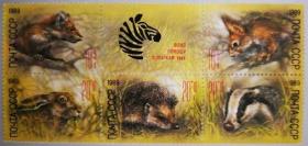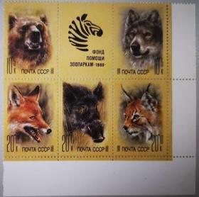 前苏联1988年动物园动物邮票 10+5K鱼,10+5K狼,20+10K狐, 20+10K野猪,20+10K猞猁。副票图案为基金会会徽,为援助动物园基金会发行的附捐邮票。