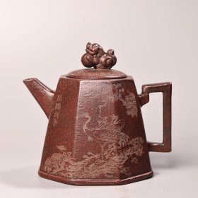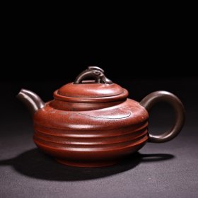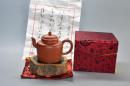 (甲0752)范风云制 紫砂壶《手工香溢壶》全新手工壶,原矿朱泥,壶嘴到壶把长12cm,宽7.5cm,高8.5cm,精品盒,底款“风云金砂”,底托是拍摄道具非商品。