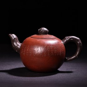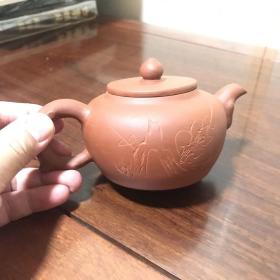 H-0661日本回流 六十年代中国宜兴紫砂一厂 日本定制全手工 原矿朱泥紫砂泡瓶 /底款:中国宜兴方款,盖款:解芬/容量:250毫升(顺丰到付不退换)