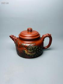 【精品紫砂 张益款 正宗宜兴紫砂壶 纯全手工茶壶 原矿红泥鱼化龙大茶壶茶具】【 尺寸 长21.8宽3.1高12】 【好东西会说话,何须用托来顶价,本店满百包邮挂】