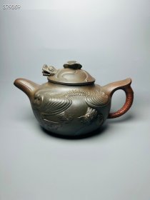 (甲0749)范风云制 紫砂壶《手工灵龙壶》全新手工壶,原矿清灰泥,壶嘴到壶把长13.5cm,宽9cm,高7.3cm,精品盒,底款“风云自省”,底托是拍摄道具非商品。