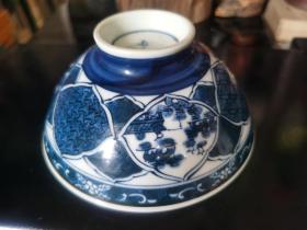 日本购回茶道具:清末民国时期的老青花柴烧茶杯 ,鱼鳞纹手绘青花杯,茶杯、汤吞,猪口杯,釉下青花内外满绘茶杯,百年老青花,有磕碰冲线和粘贴修复痕迹,残器,标本价。