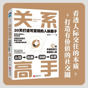 正版✔关系高手:20天打造可变现的人脉圈子(关系高手李轩洋的人际关系整理术,在未来的不确定性中寻找机遇和获得援手) 李轩洋 著 时代华语 出品✍你的抗风险能力取决于你在人际网络中的位置。不用努力迎合也能打造高质量人脉网络的关系整理术。解决典型的社交场景问题,认知、拓展、深耕、经营4大维度重塑有效社交。兆民、卢菲菲、兔妈、吴帝德诚挚推荐。正版全新书籍现货如需其他图书敬请联系客服:)